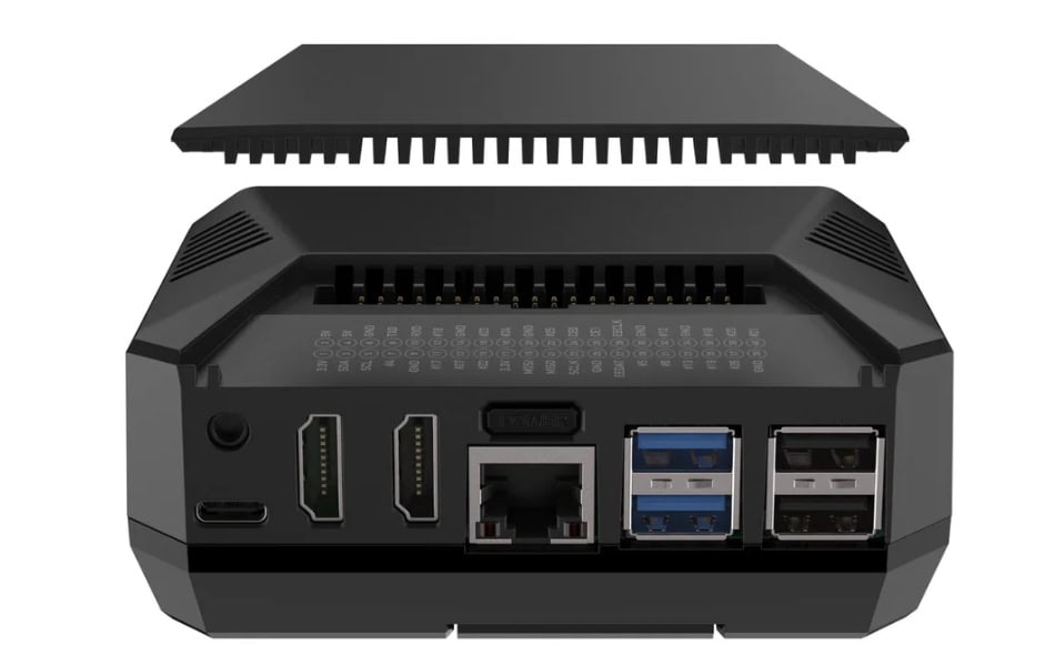 Pibow Coupe 5 – The Pibow Coupe 5 is a see-through case with the stylish flair we’ve come to love from the makers at Pimoroni. This case is made of layers of stacked acrylic in your choice of rainbow, purple, or translucent black and also has cutouts to access the GPIO, PCIe, and camera.