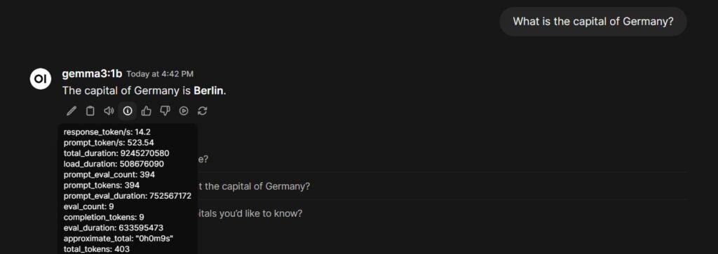 Maybe I’m too impatient. So I went down to a lower parameter count, and I found qwen:0.5b and gemma3:1b were much more responsive on my setup.