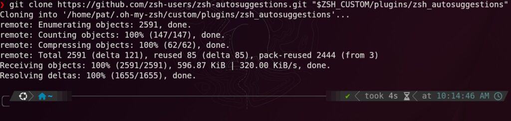 Now restart your Zsh session and try typing a command to see the autosuggestion.
