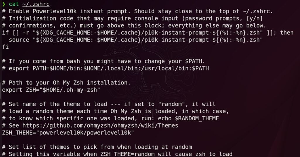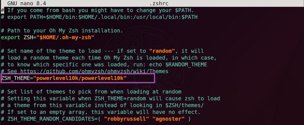 Now, to change the theme to Powerlevel10k, change these lines in ~/.zshrc file: