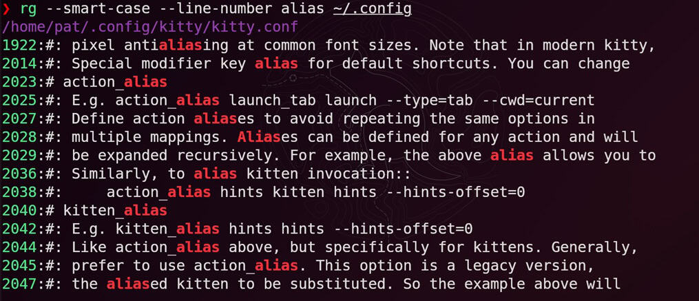 Now, when you enter the command rgf, you will get a fancy fuzzy search with previews and the option to open the file at exactly the line where the keyword was found.