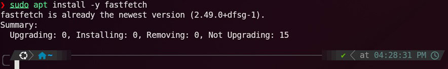 First, install fastfetch using the command:sudo apt install -y fastfetch