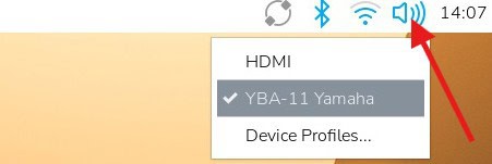 There’s an extra step after pairing the speaker, you need to right-click on the sound icon, and switch to the new device in the dropdown menu. It looks like this: